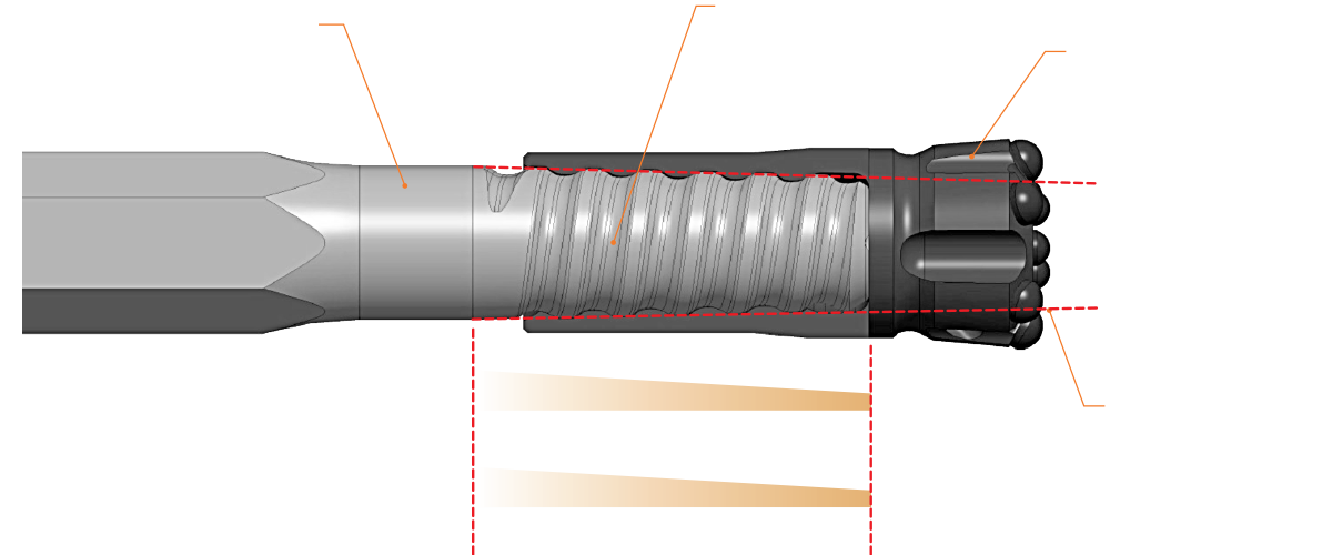 Improve productivity with a tapered thread profile offering superior rod-bit make-up and breakout characteristics. This key thread feature results in more drilling time.